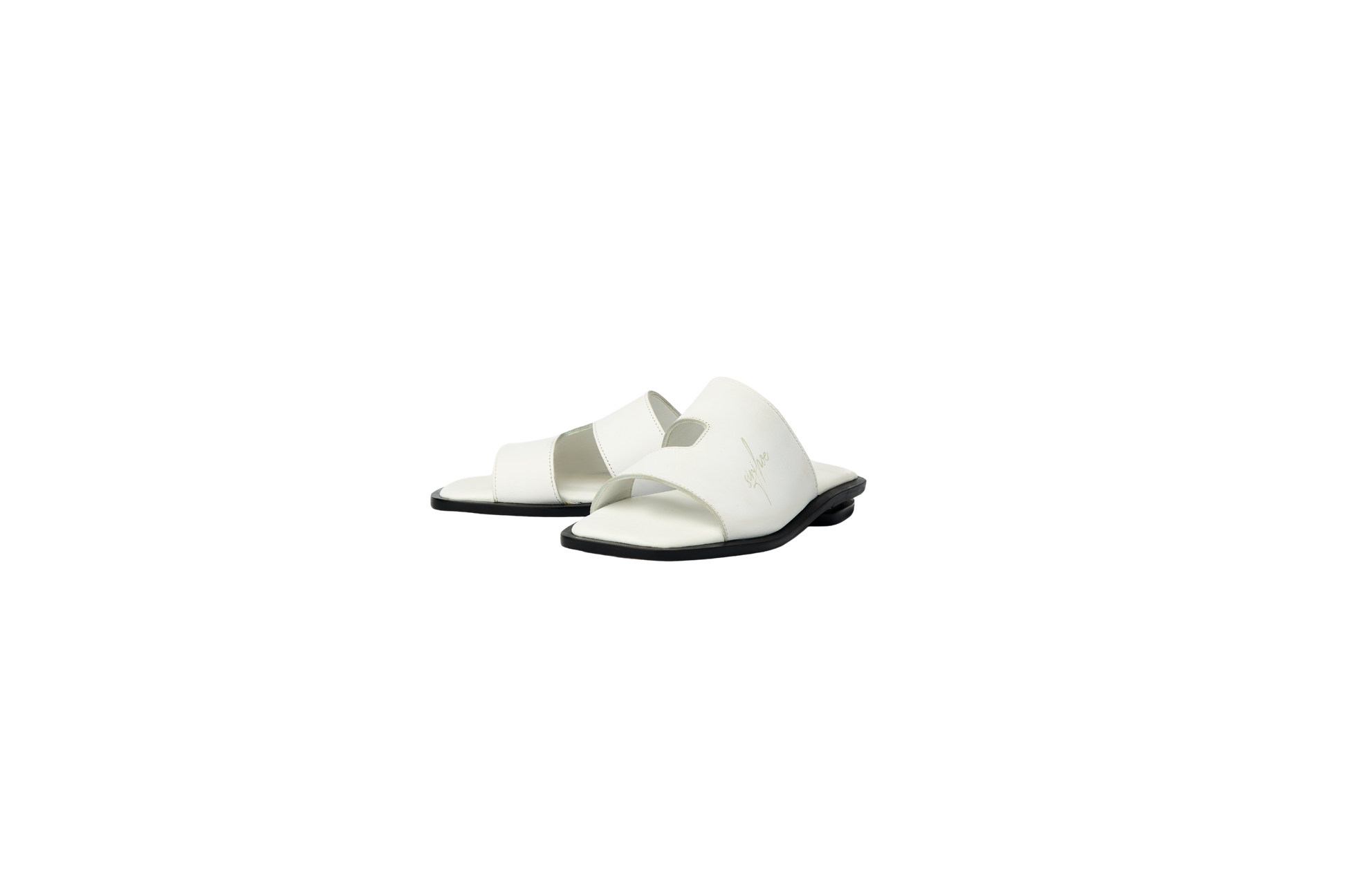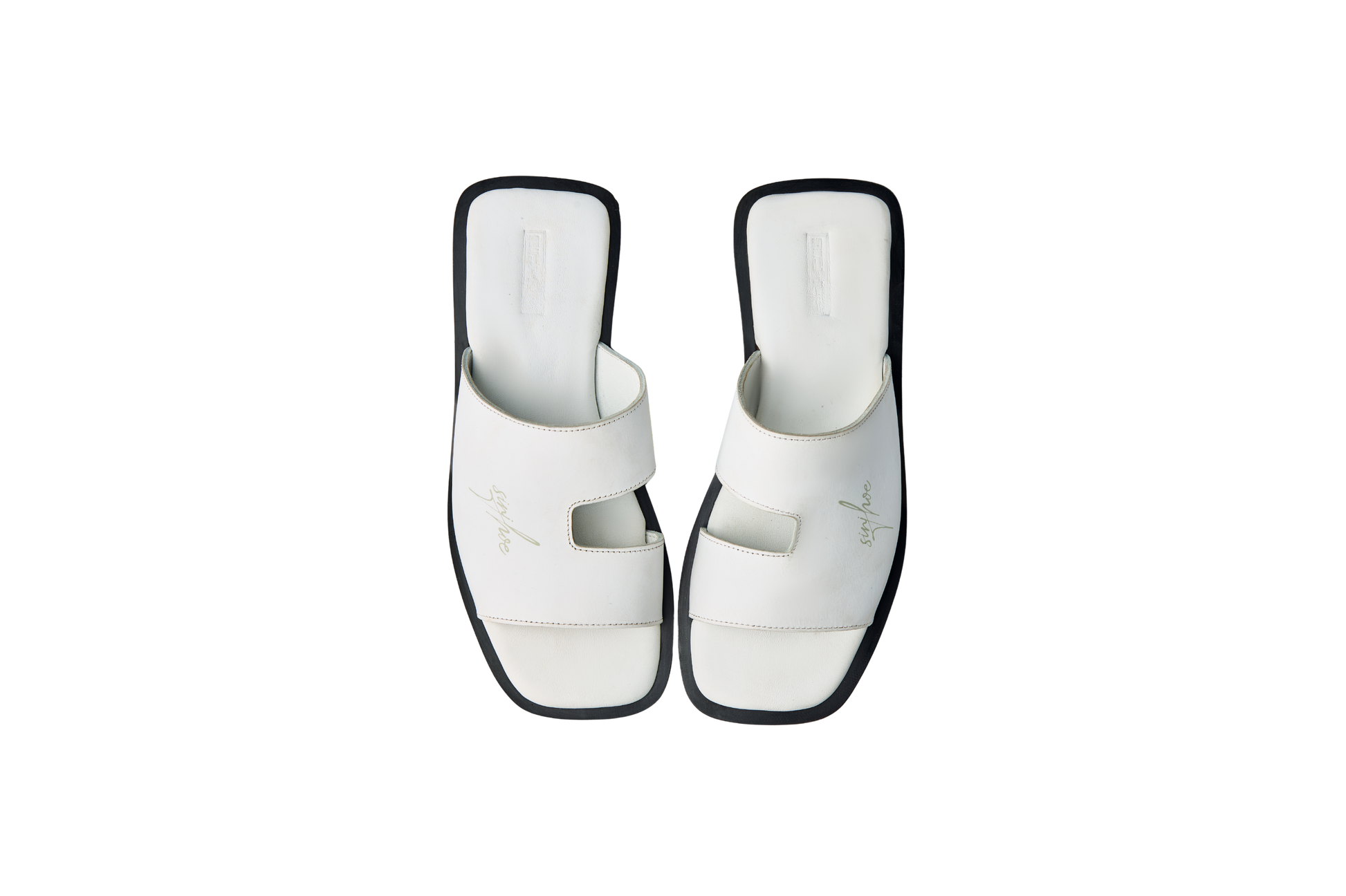 Soft off-white premium leather upper, dual-strap cutout silhouette, dark contrasting sole. The contrast is deliberate — the clean white against the dark edge gives it structure without noise. It brightens your outfit without trying too hard.